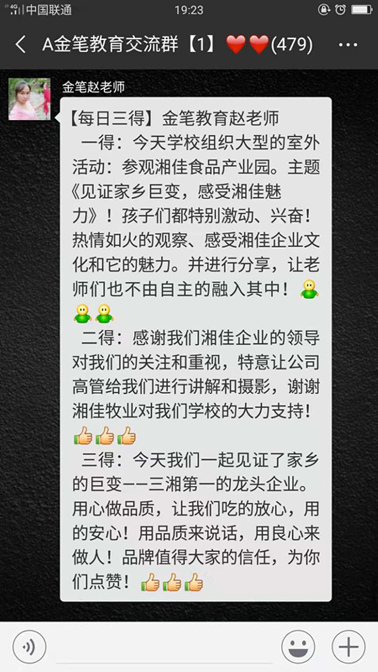 這次參觀企業的活動,加深了學生們對家鄉本土企業湘佳牧業的了解,開闊了學生們的眼界增長了學生們的見識。