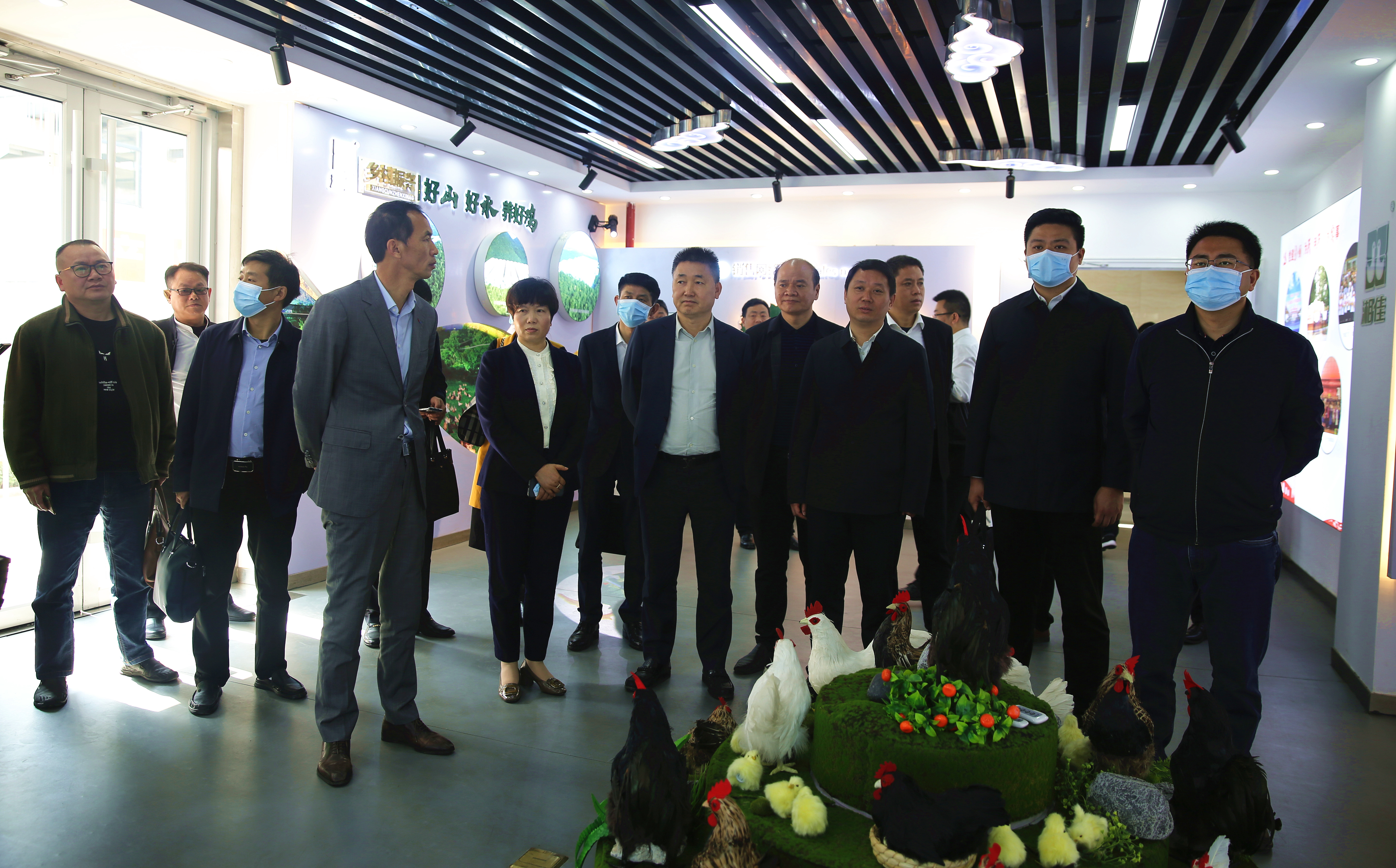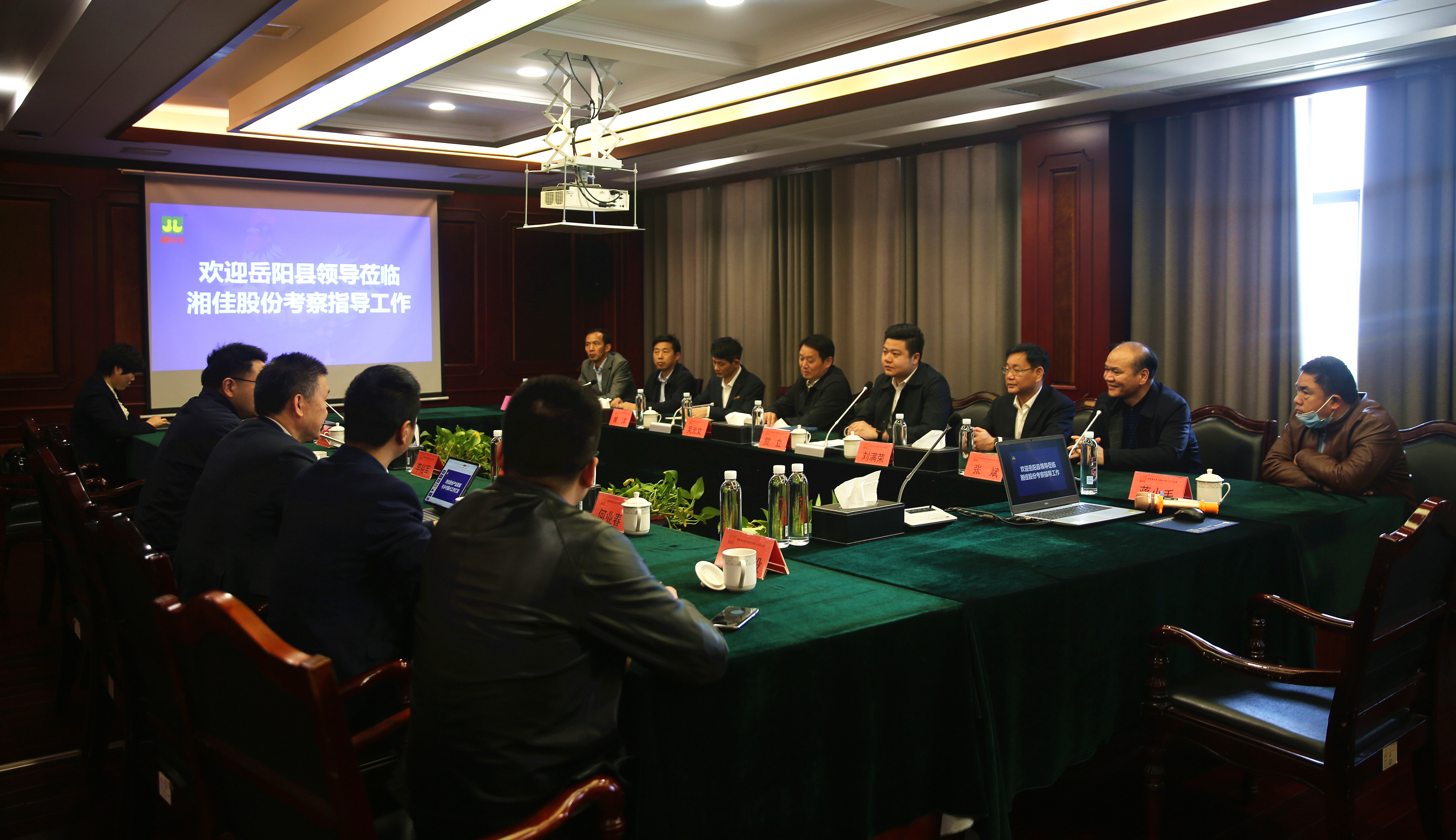 3月11日上午,岳陽縣委副書記、縣政府縣長吳光文率岳陽縣相關部門負責人考察湘佳股份,并與湘佳股份董事長喻自文一起商討岳陽王鴿產業發展事宜。